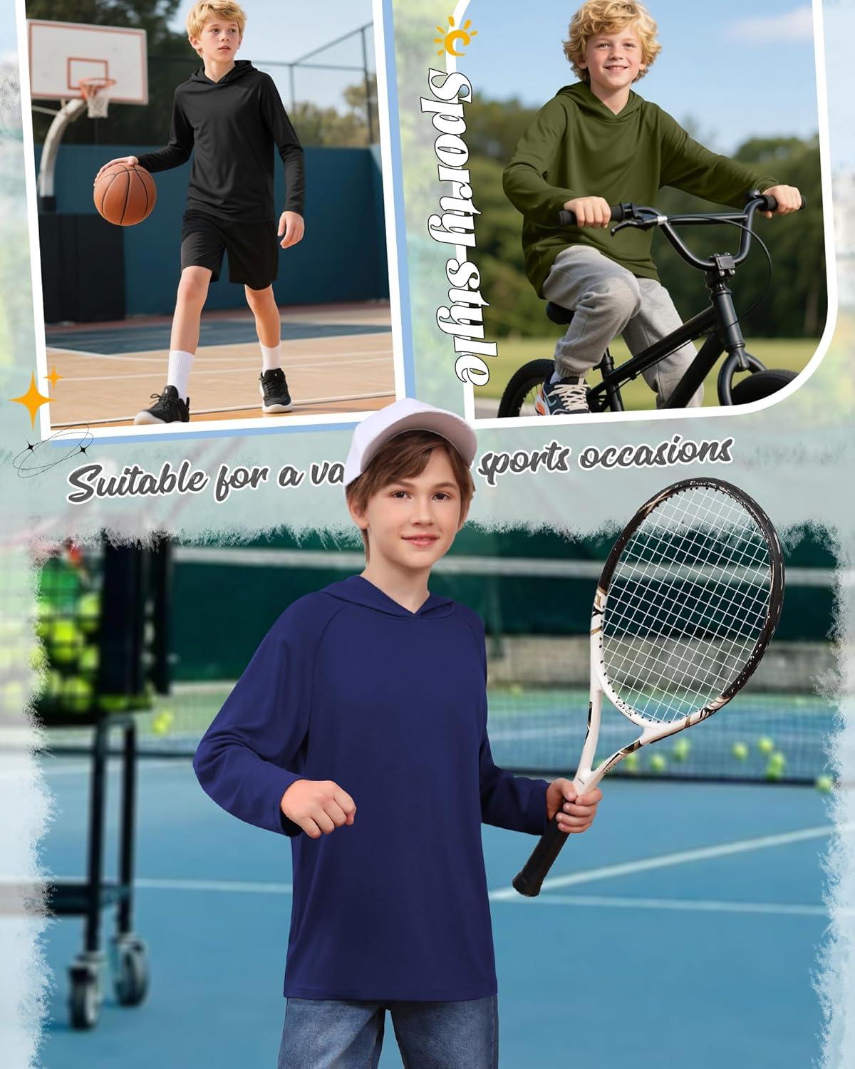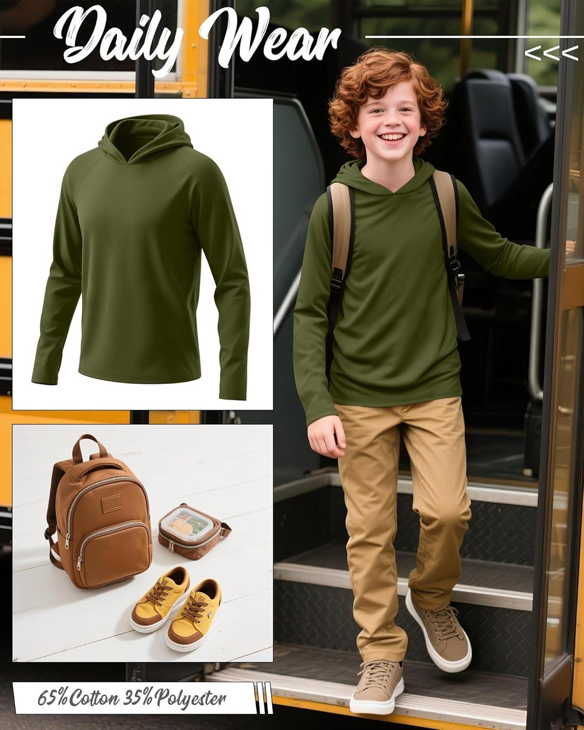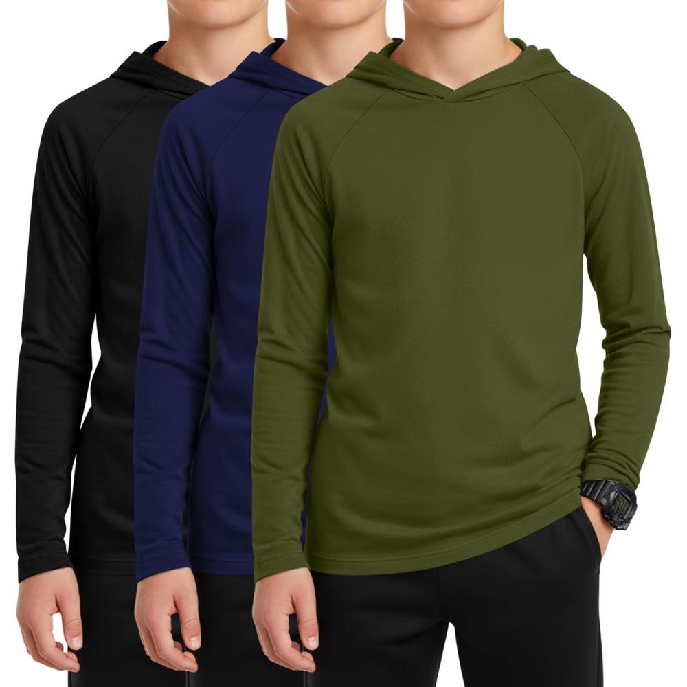 3 Pack Boys Hoodies Kids Long Sleeve Athletic Workout Cotton Blend Sweatshirts Casual Pullover Shirts(ages 6-18)(Army Green Navy Blue Black)