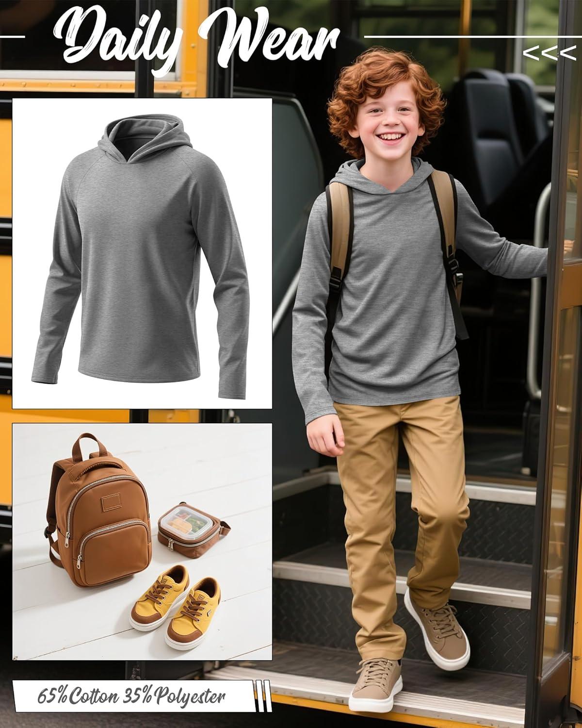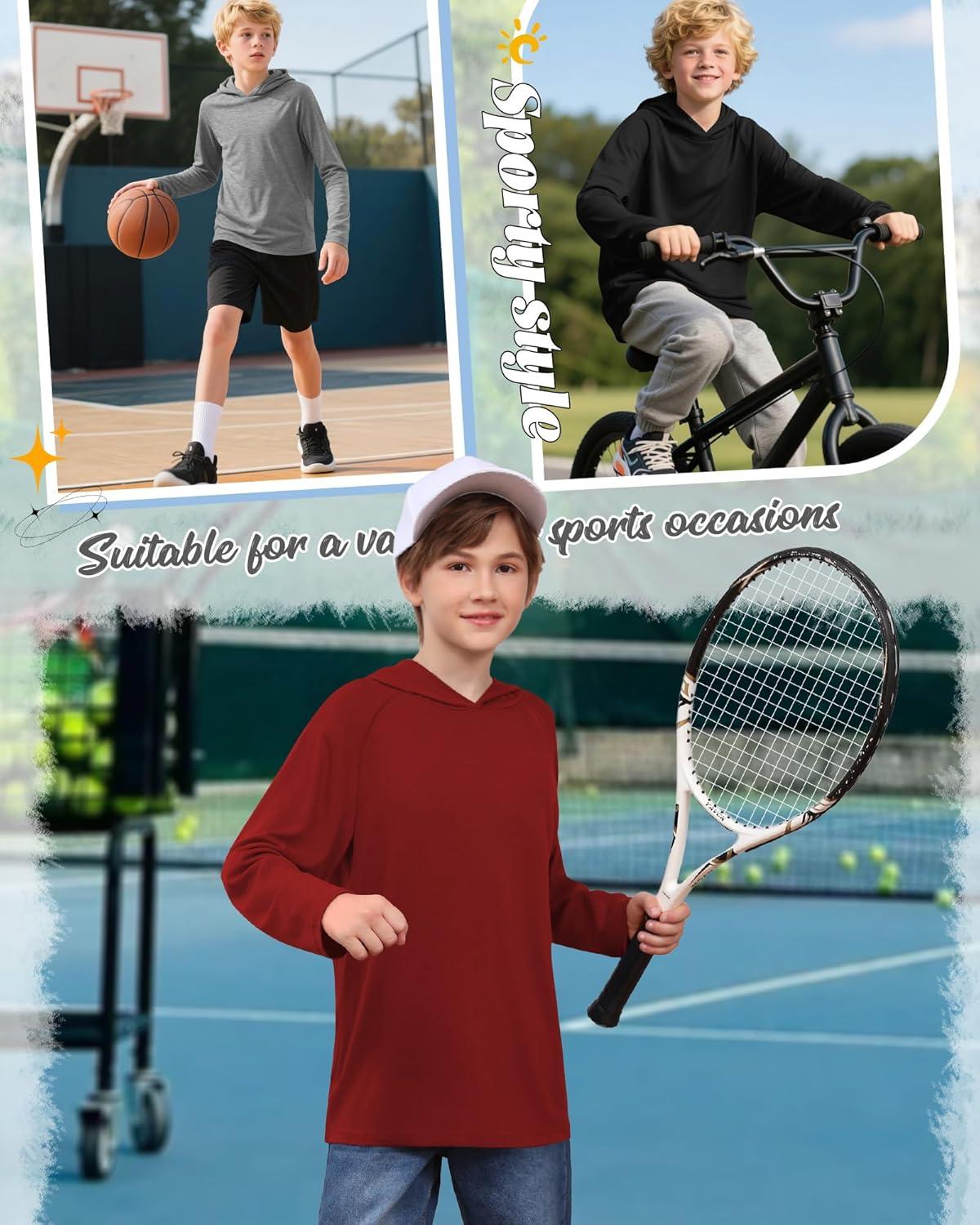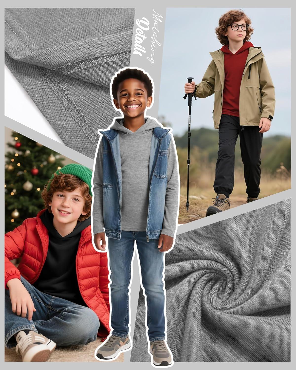 3 Pack Boys Hoodies Kids Long Sleeve Athletic Workout Cotton Blend Sweatshirts Casual Pullover Shirts(ages 6-18)(Light Gray Wine Red Black)