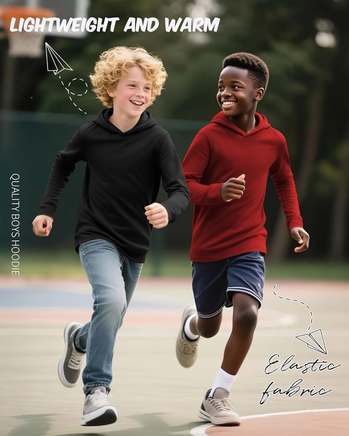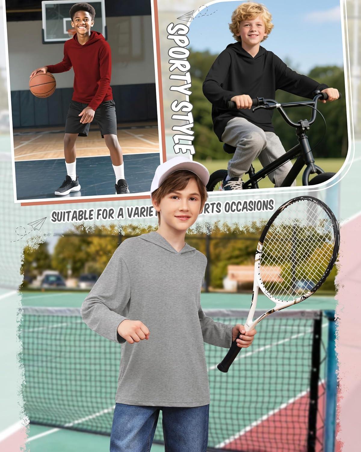 3 Pack Boys Long Sleeve Hoodies Kids Comfy Active Athletic Workout Sweatshirts Casual Pullover Shirts (Ages 6-18)(Light Gray Wine Red Black)
