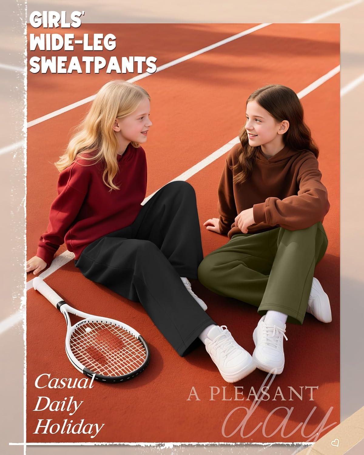 Featuring a wide-leg design, these girls' sweatpants offer a relaxed and trendy look. The loose fit provides plenty of room for movement, providing an option for active kids or teens