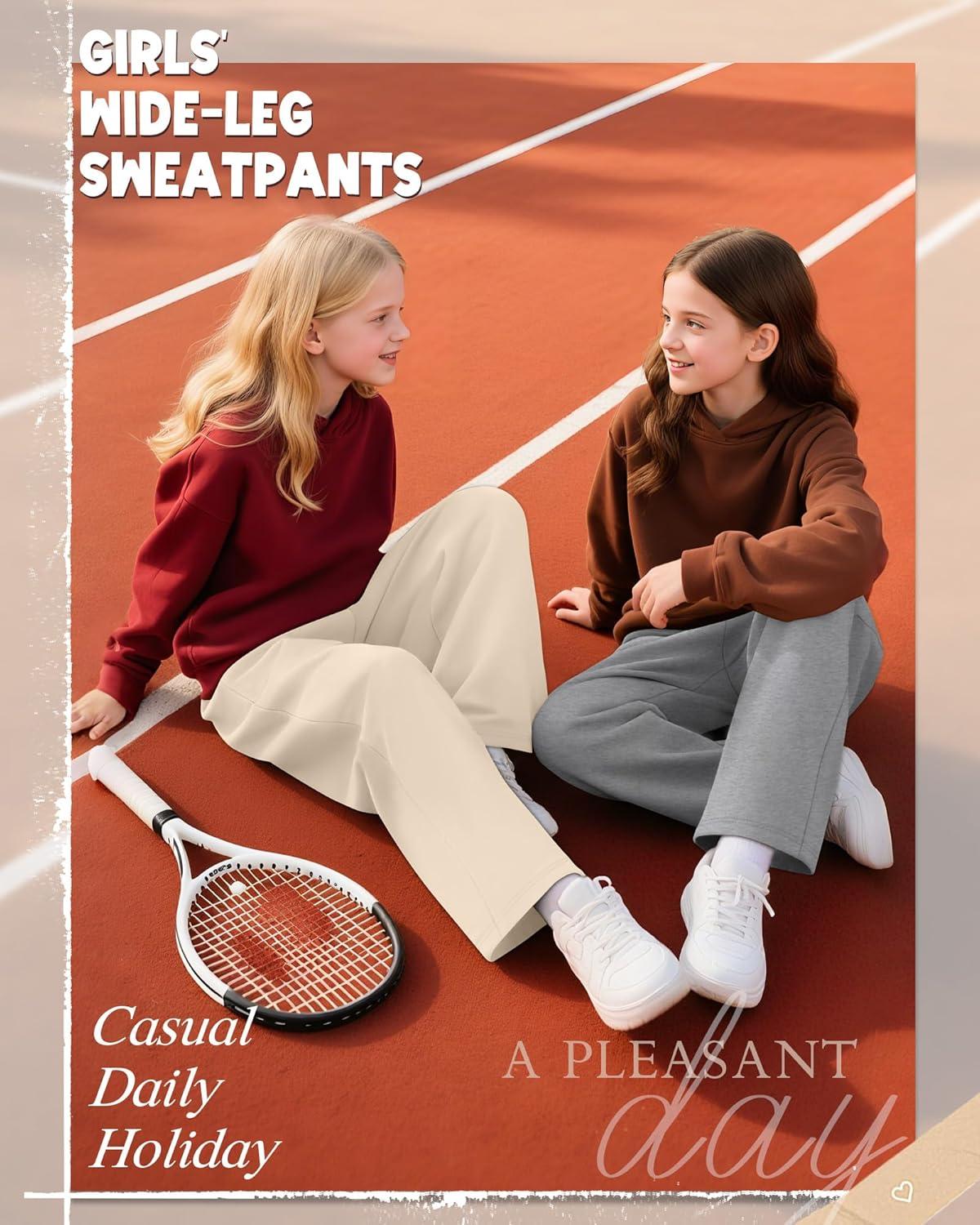 Featuring a wide-leg design, these girls' sweatpants offer a relaxed and trendy look. The loose fit provides plenty of room for movement, providing an option for active kids or teens