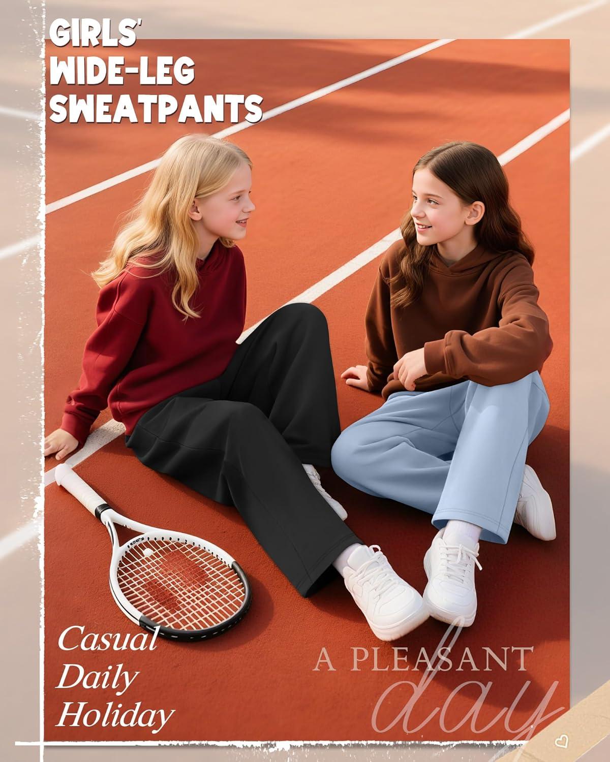 Featuring a wide-leg design, these girls' sweatpants offer a relaxed and trendy look. The loose fit provides plenty of room for movement, providing an option for active kids or teens