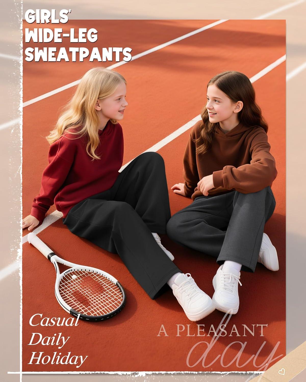Featuring a wide-leg design, these girls' sweatpants offer a relaxed and trendy look. The loose fit provides plenty of room for movement, providing an option for active kids or teens
