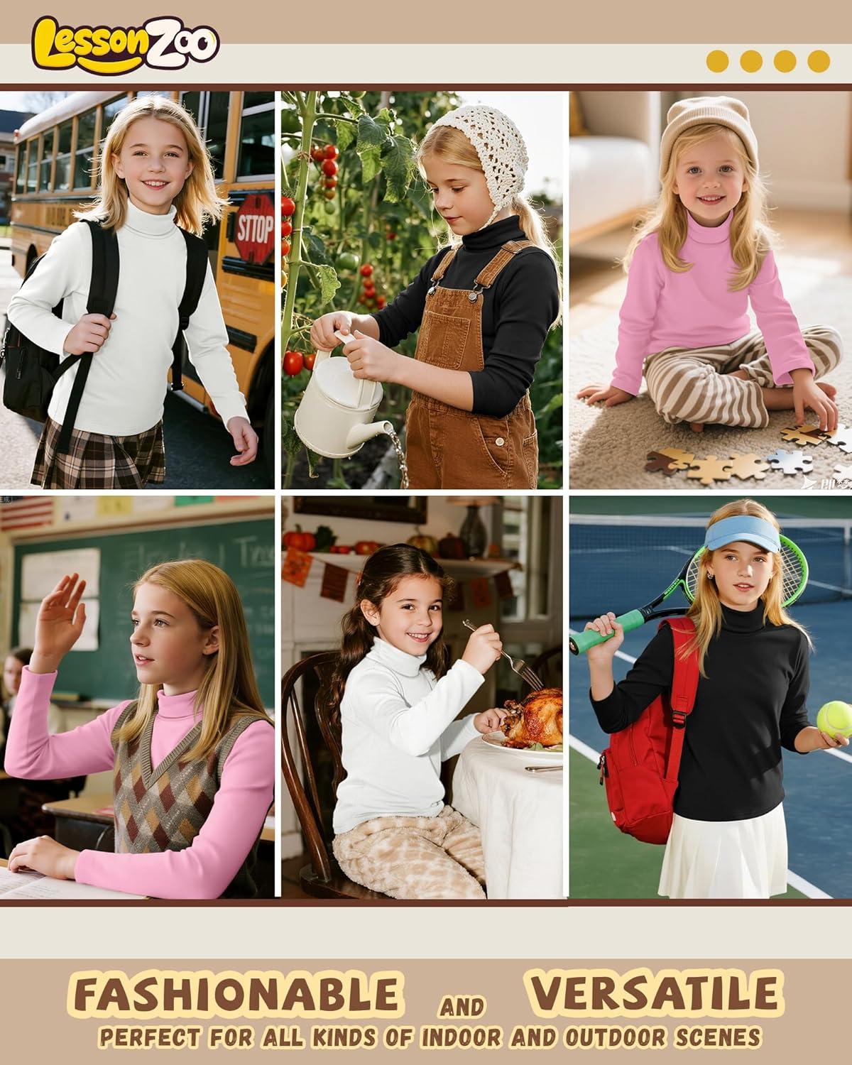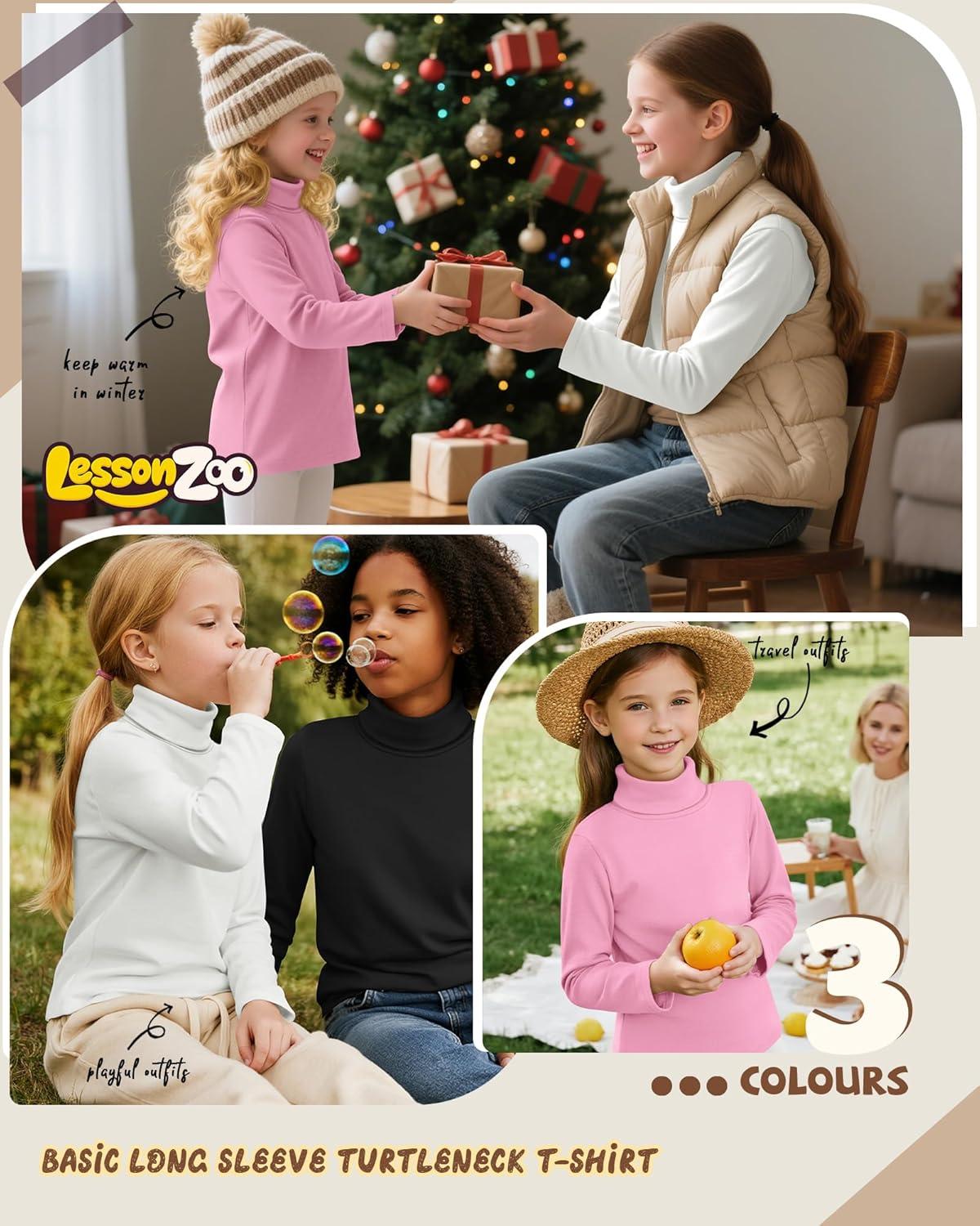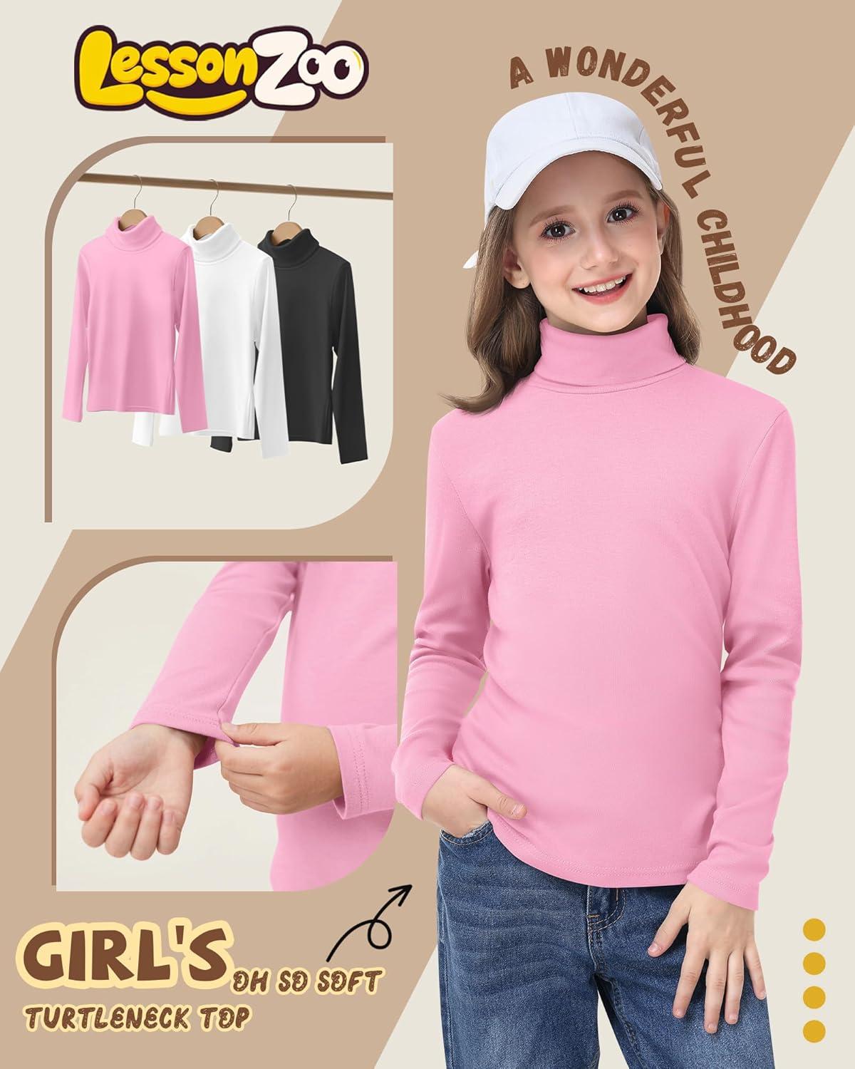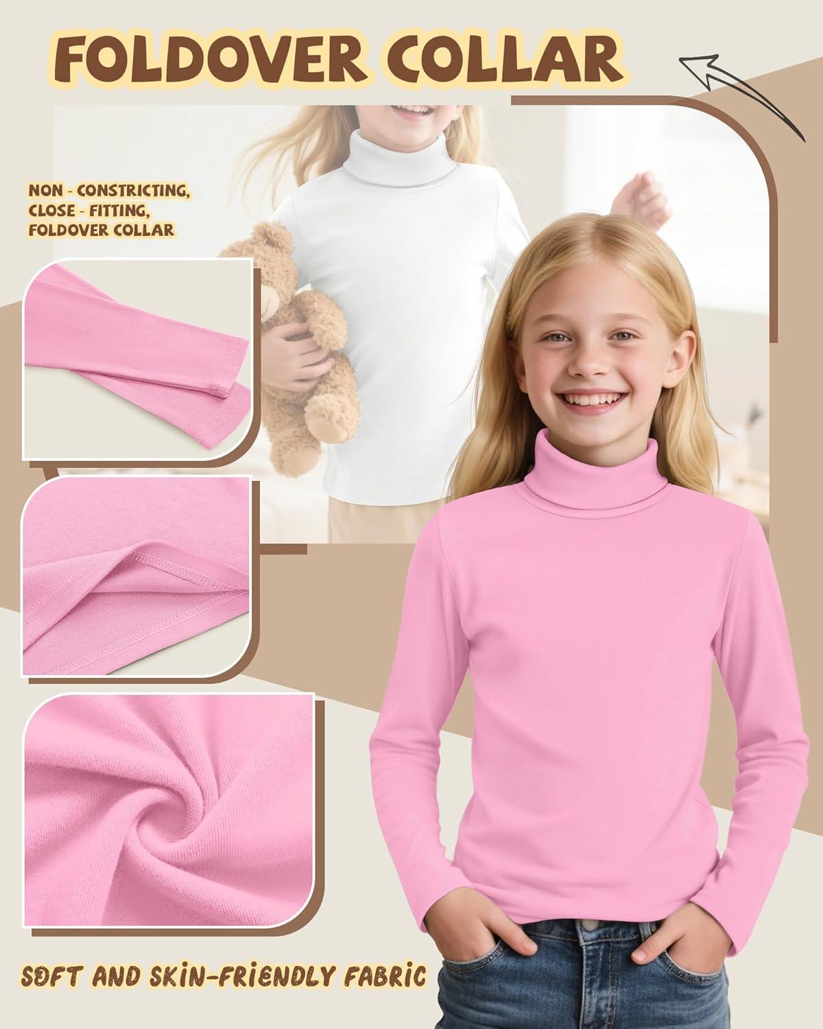 3 Pack Girls Turtleneck Long Sleeve Pullover T-Shirt Soft Warm Stretch Kids Basic Turtle Neck Tops for Girls(Pink White Black)