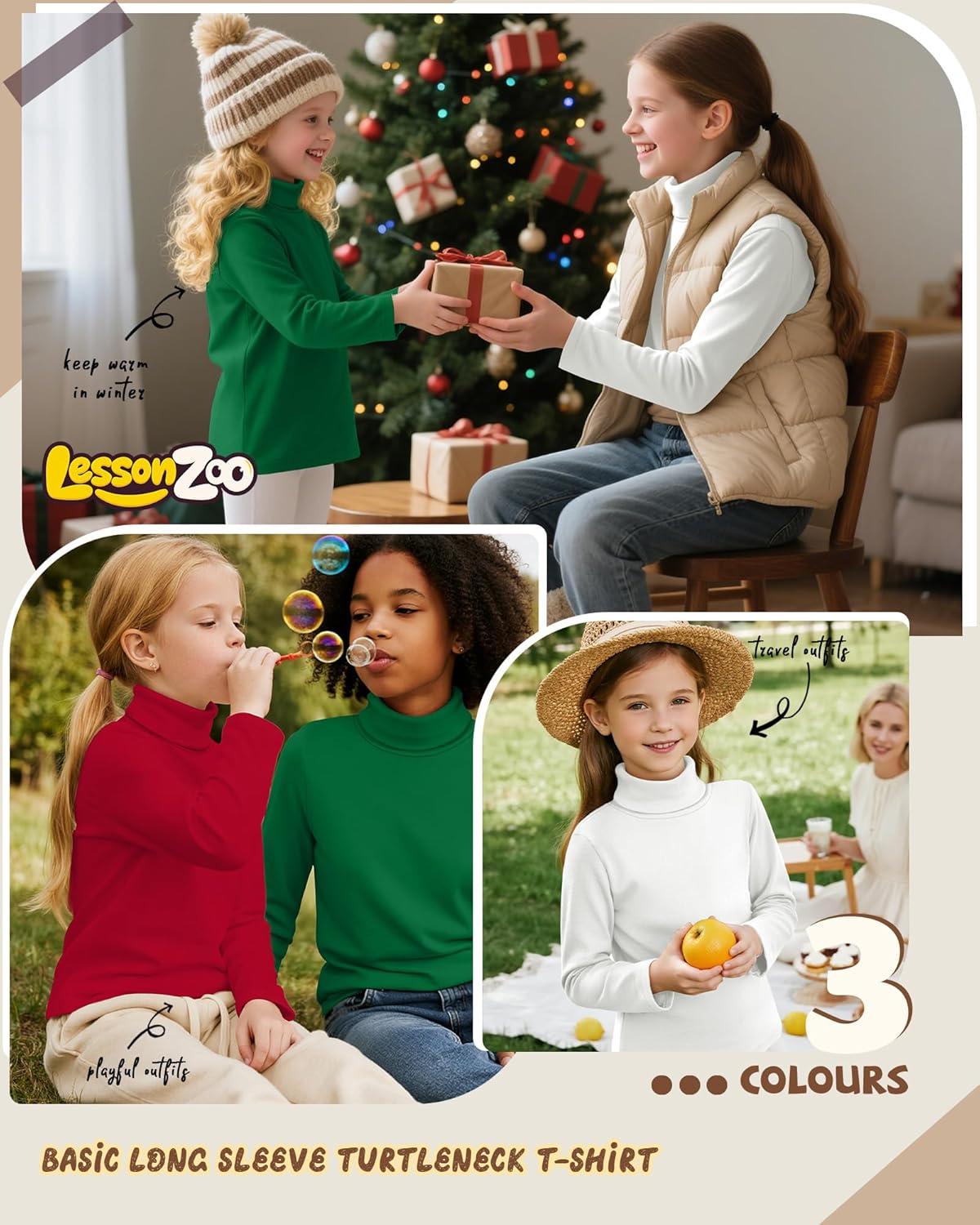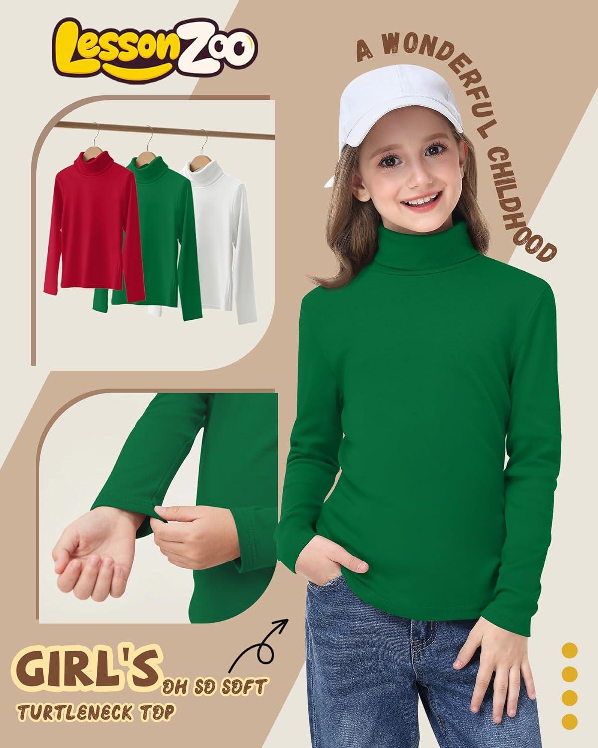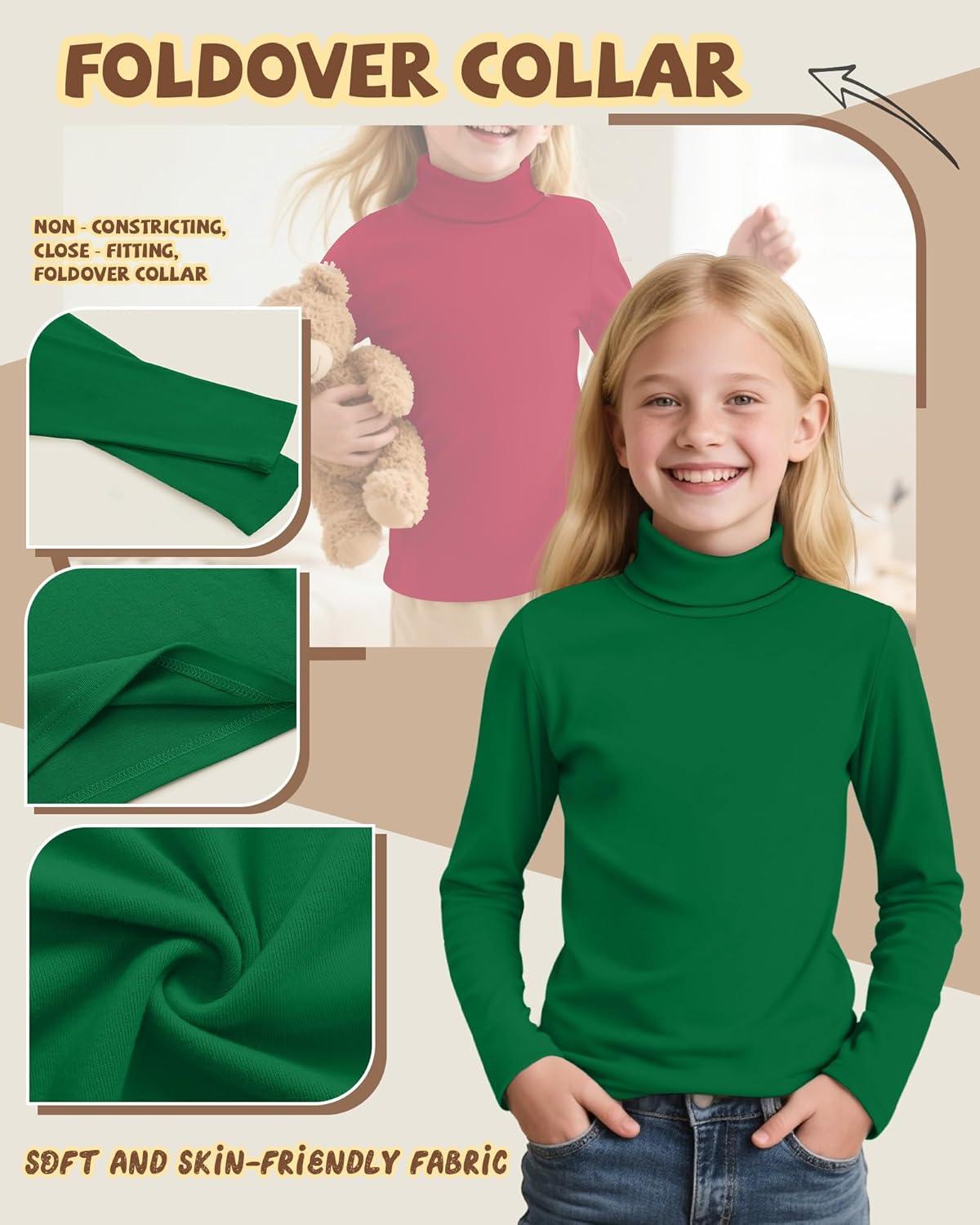3 Pack Girls Turtleneck Long Sleeve Pullover T-Shirt Soft Warm Stretch Kids Basic Turtle Neck Tops for Girls(Red Green White)